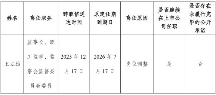 12月17日,杭州银行发布公告称,该行监事会收到监事长、职工监事王立雄提交的书面辞职报告。因岗位调整的原因,王立雄申请辞去第八届监事会监事长、职工监事及监事会监督委员会委员职务。王立雄辞任后,继续担任党委委员,同时,将担任副行长。